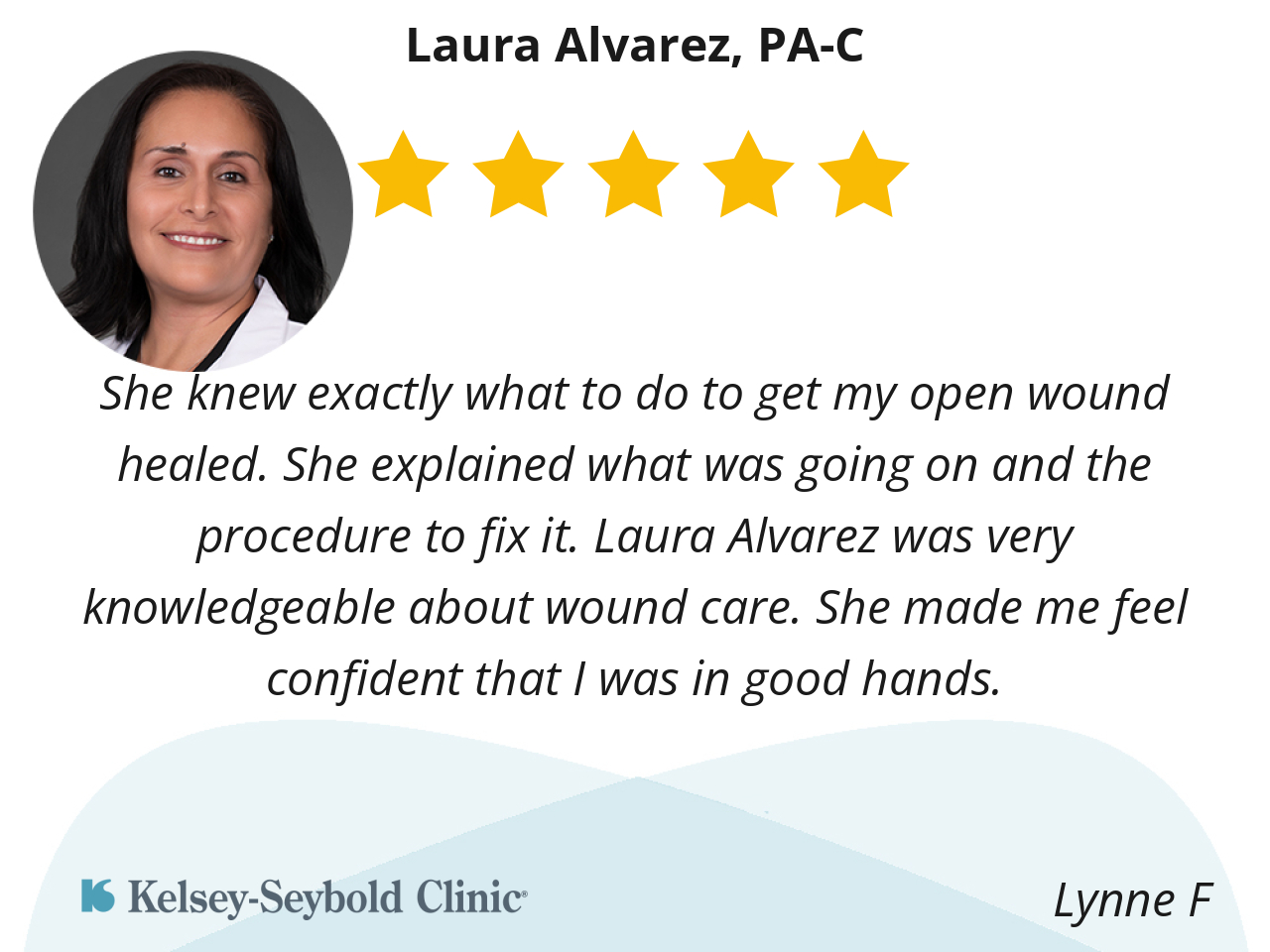 She knew exactly what to do to get my open wound healed. She explained what was going on and the procedure to fix it. Laura Alvarez was very knowledgeable about wound care. She made me feel confident that I was in good hands.