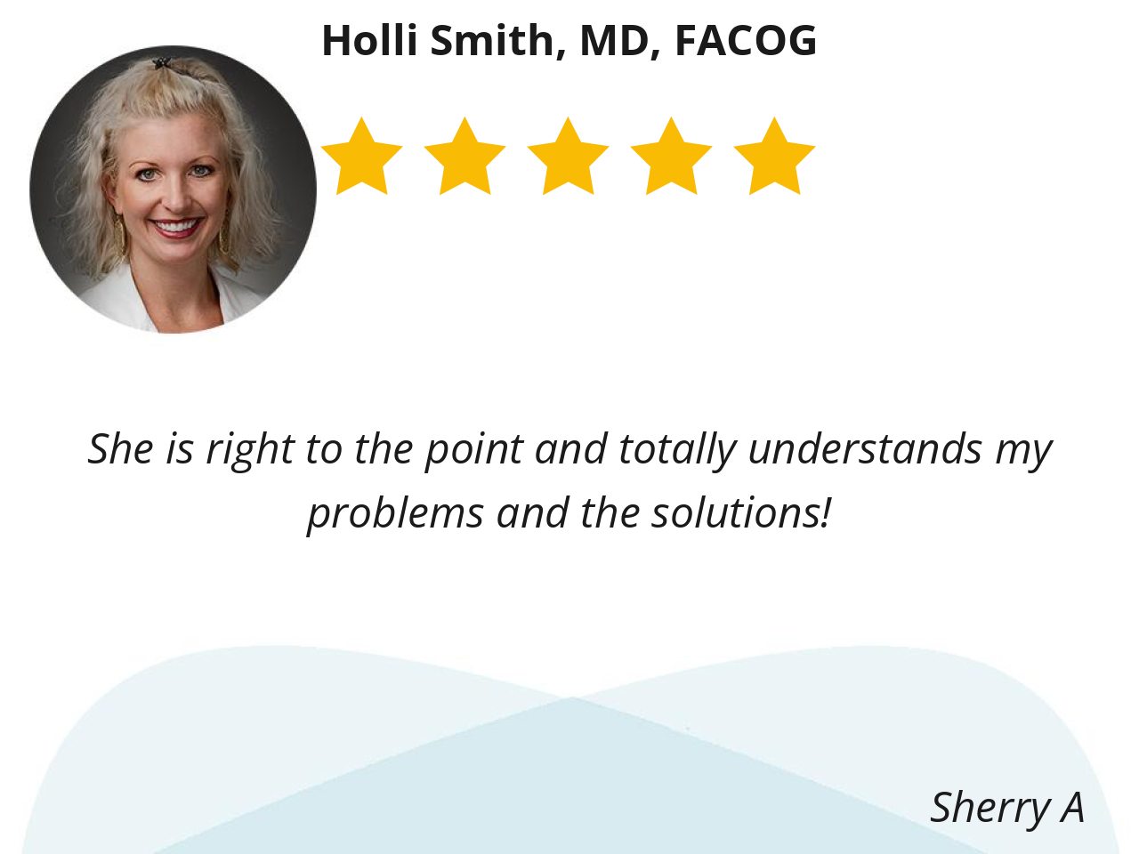 She obviously cares about her patients, not only during office visits but in between. She is intelligent, experienced and outgoing. I know she wants what is best for me.