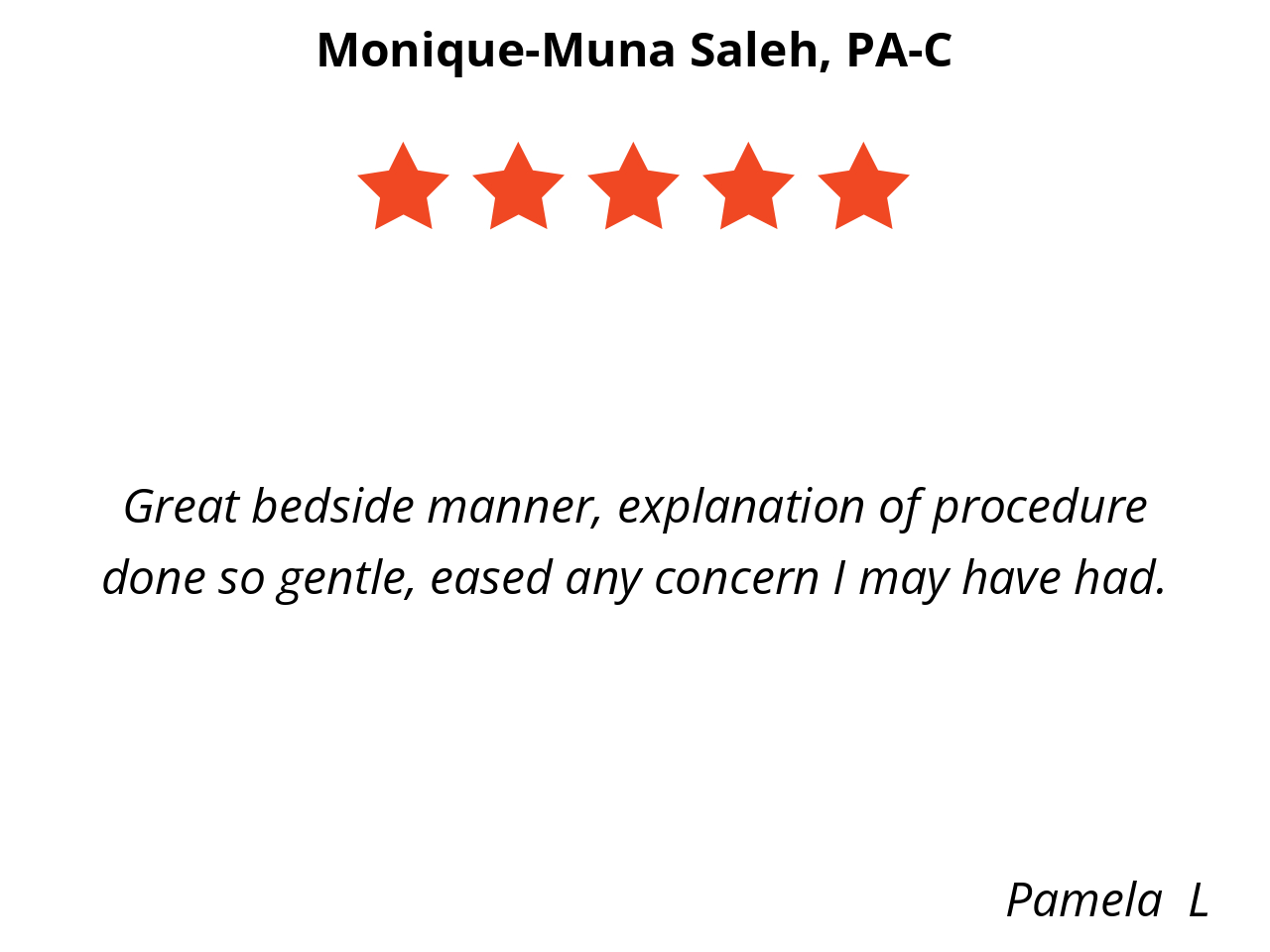 Great bedside manner, explanation of procedure done so gentle, eased any concern I may have had.