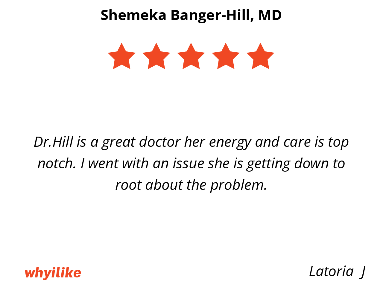 Dr.Hill is a great doctor her energy and care is top notch. I went with an issue she is getting down to root about the problem.