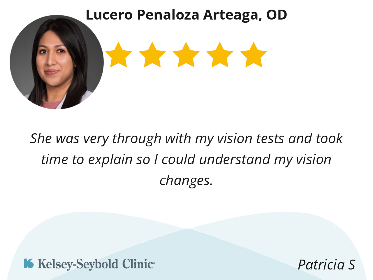 She was very through with my vision tests and took time to explain so I could understand my vision changes.