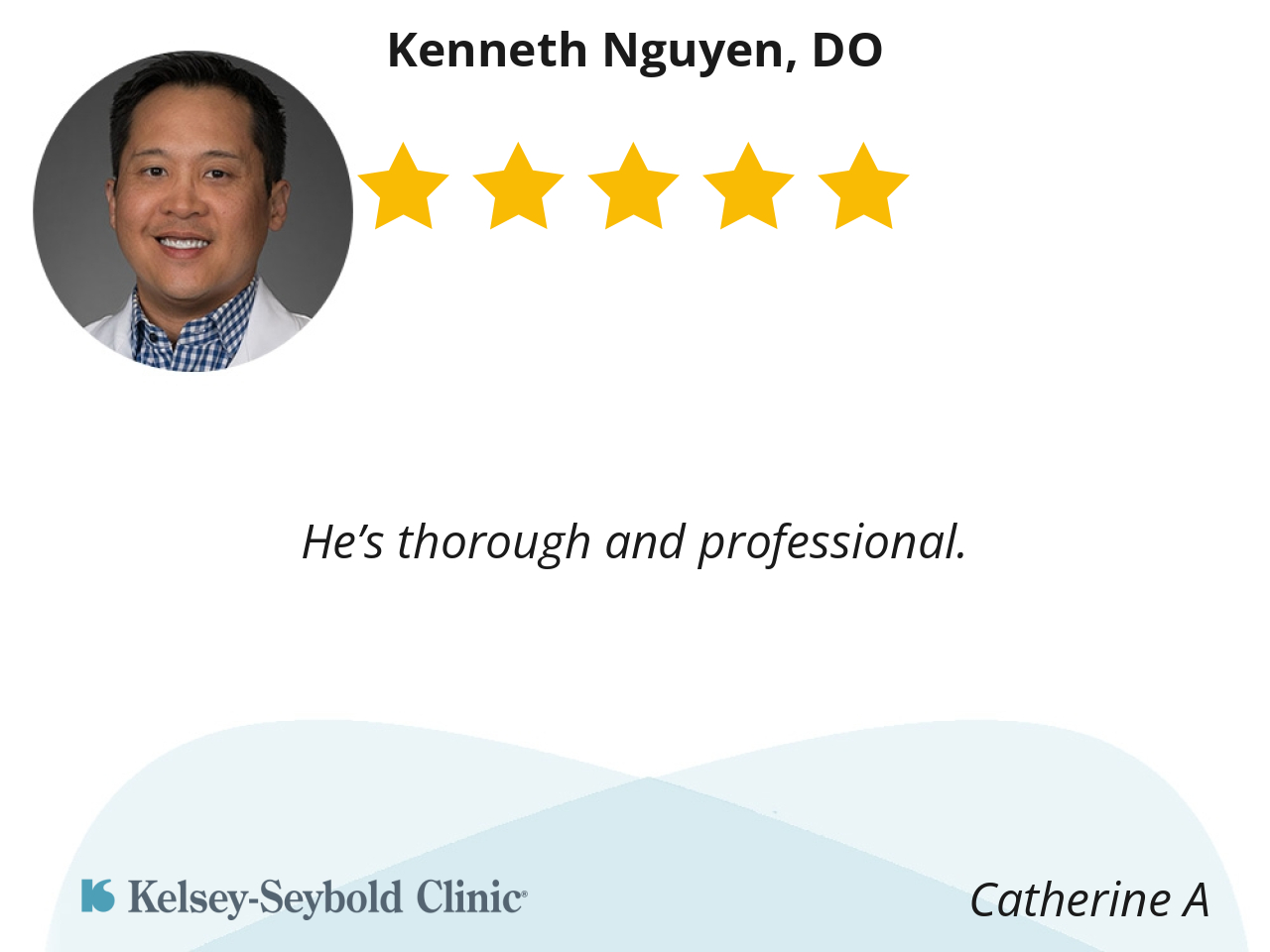 Dr. Sou was able to diagnose what the problem i have been dealing with for over at least 10 years, where as 3 other, sorry, Kelsey-Seybold doctors really had no clue, but went ahead with different treatments, which if course proved to be fruitless! I mean, Dr. Sou immediately upon looking at the problem, was able to Disgnose and Treat, needing surgery, not this experimental treatment and that experimental treatment, that giving me agony.
