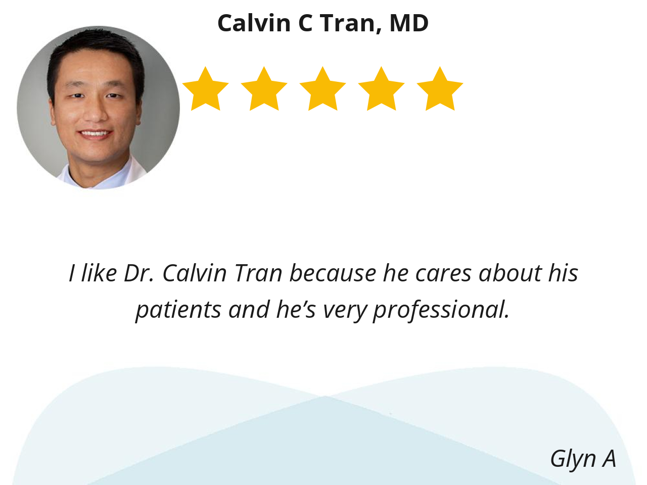 I like Dr. Calvin Tran because he cares about his patients and he’s very professional.