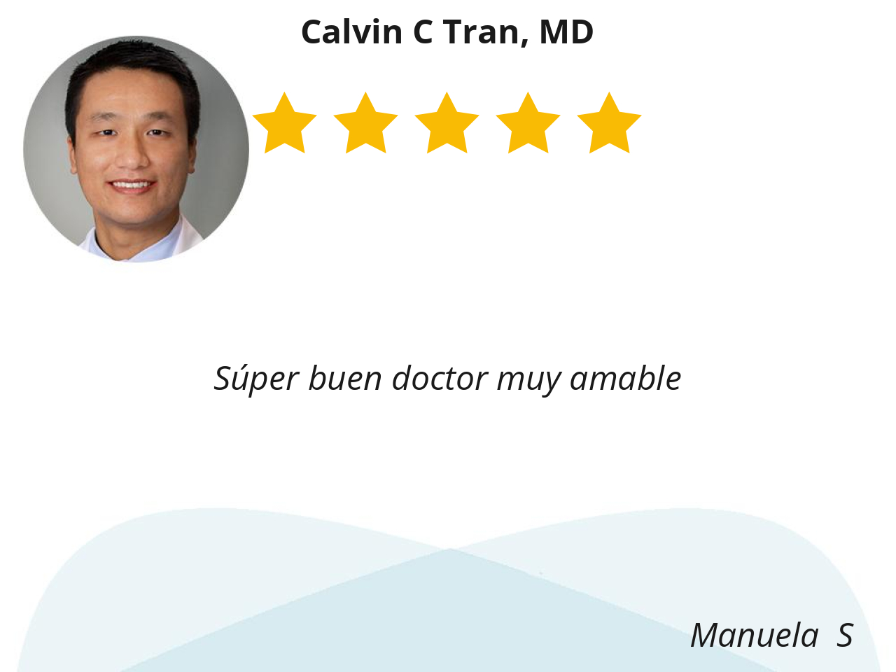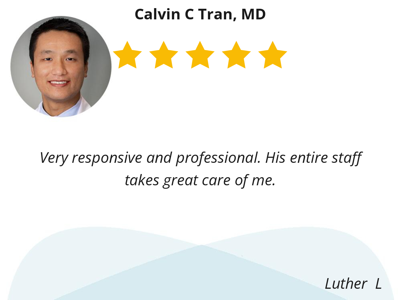 I like Dr. Calvin Tran because he cares about his patients and he’s very professional.
