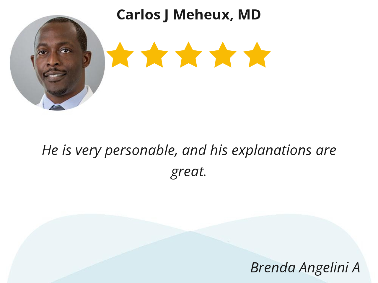 Dr. Meheux was very patient with me. He allowed me to express my concerns, ask questions and he listened. He clearly provided me options, outcomes and recommendations.