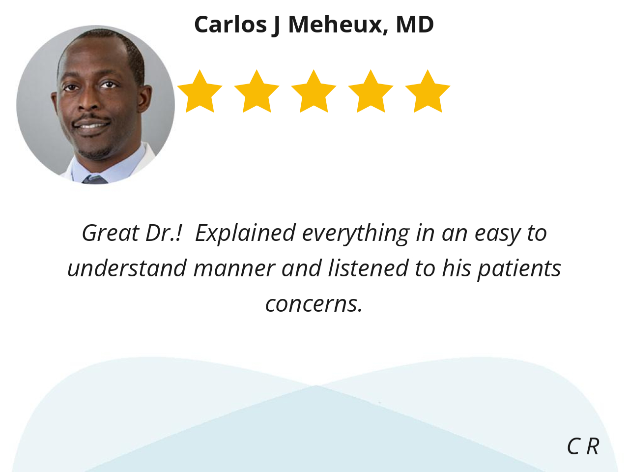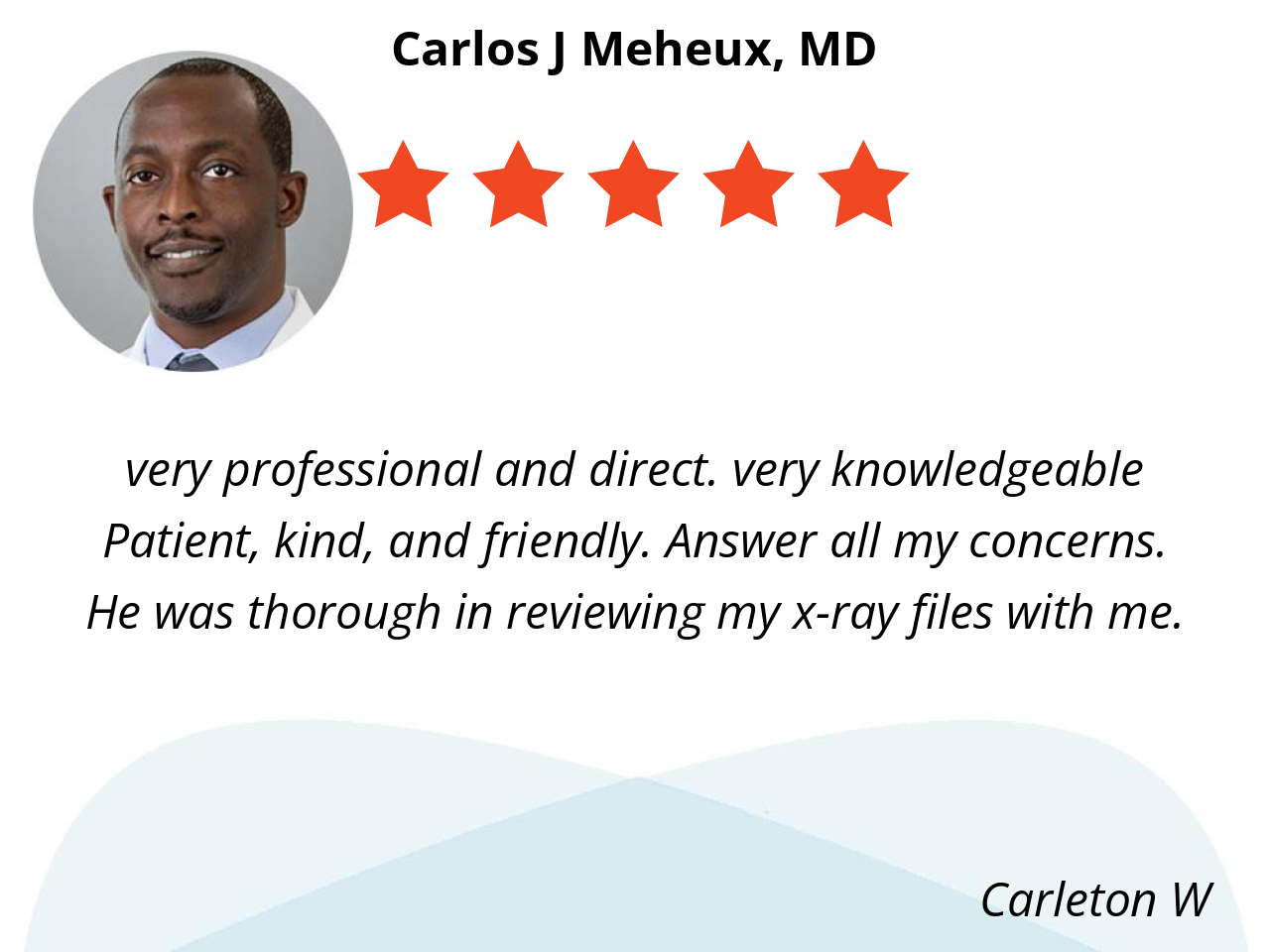 Dr. Meheux’s professionalism, clarity, and patient‑centered approach gave me confidence in the treatment plan. His ability to balance technical detail with compassionate communication made the visit both informative and reassuring. Overall, I left the appointment feeling well‑prepared, supported, and confident about moving forward with surgery.