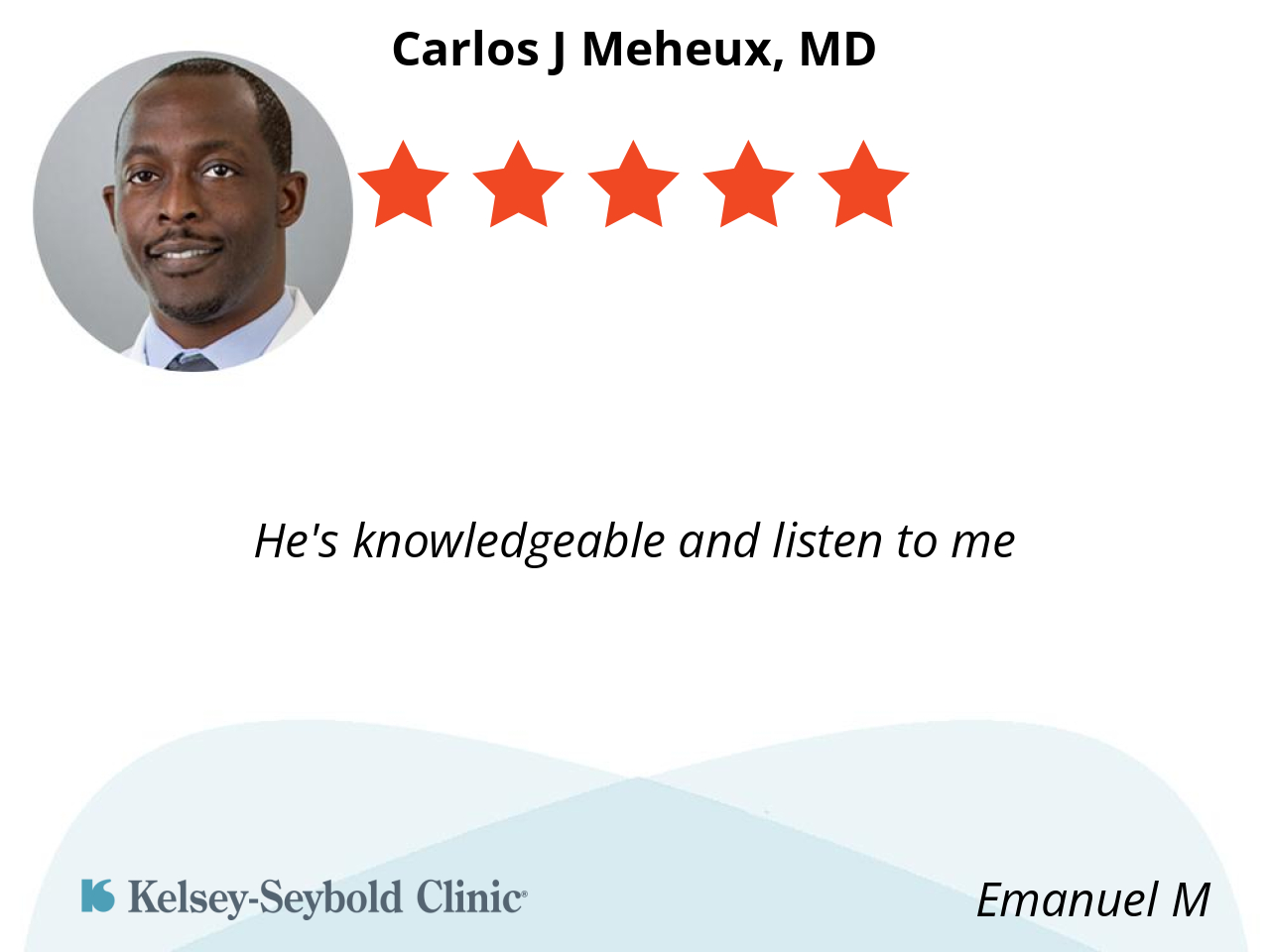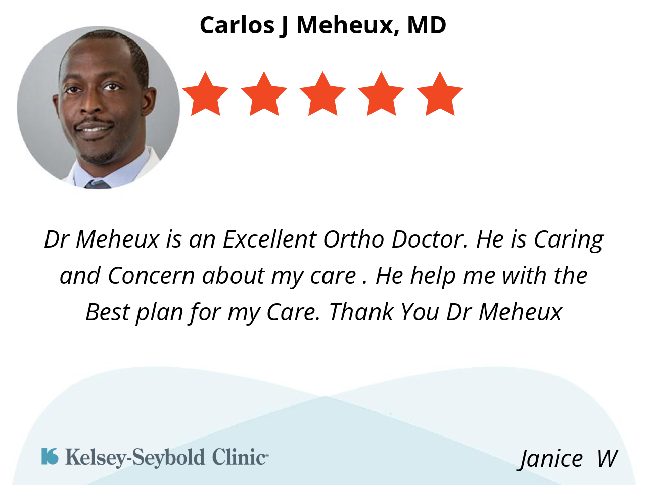 Dr Meheux is an Excellent Ortho Doctor. He is Caring and Concern about my care . He help me with the Best plan for my Care. Thank You Dr Meheux