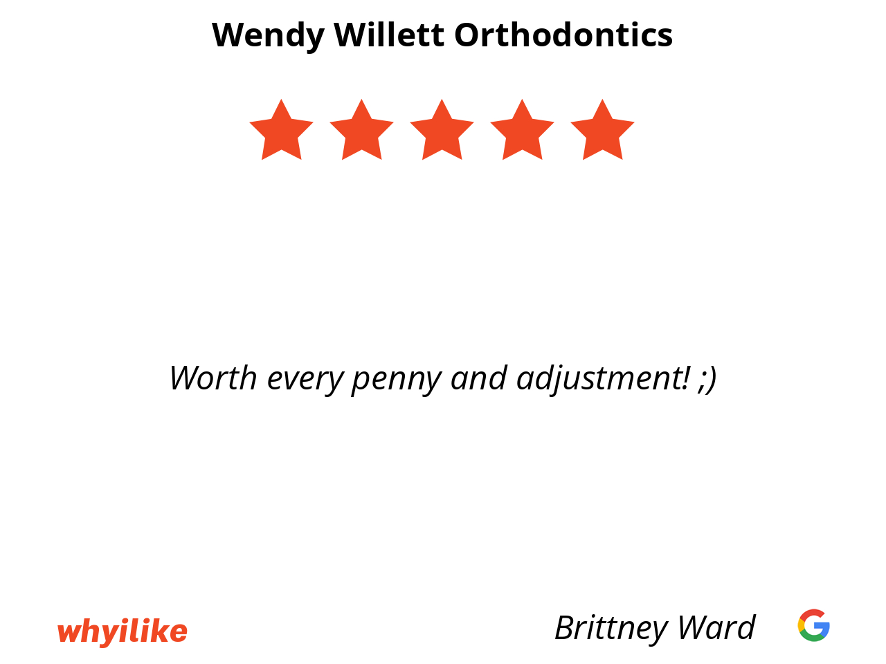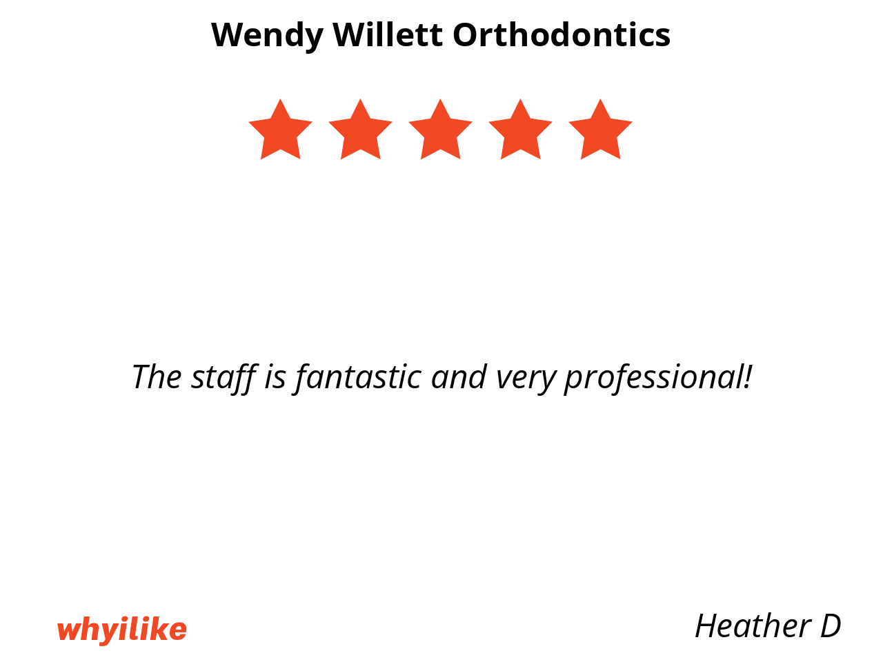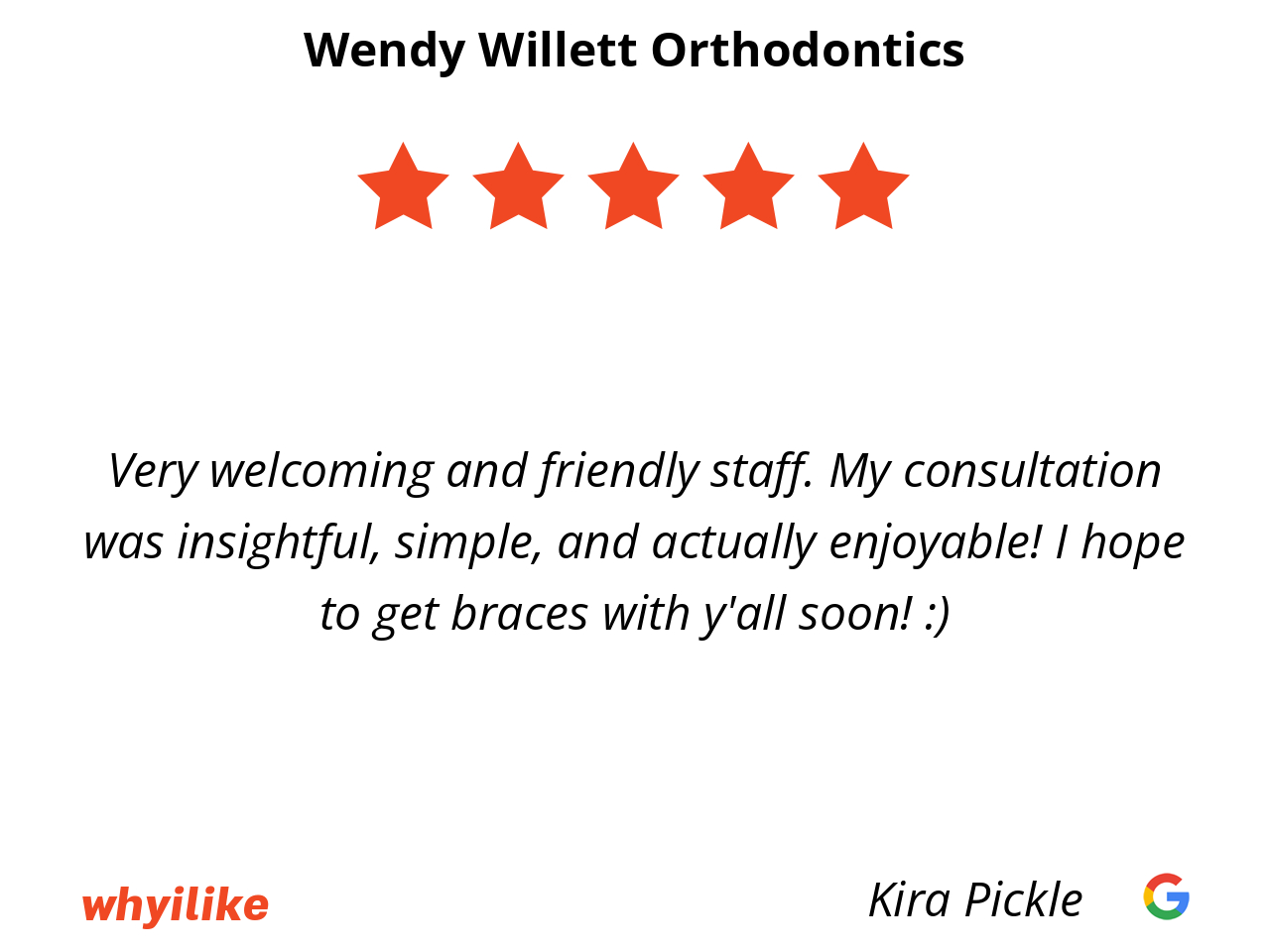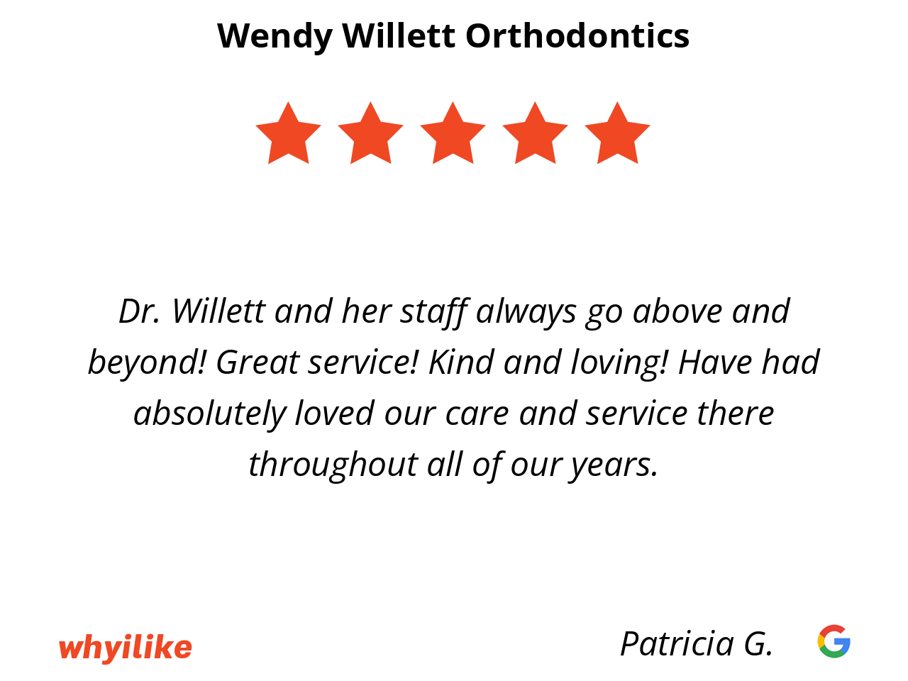 Dr. Willett and staff have made my orthodontic journey a pleasant and successful one. I was well informed about pricing and care. They made sure I had supplies needed to maintain my dental and oral health.