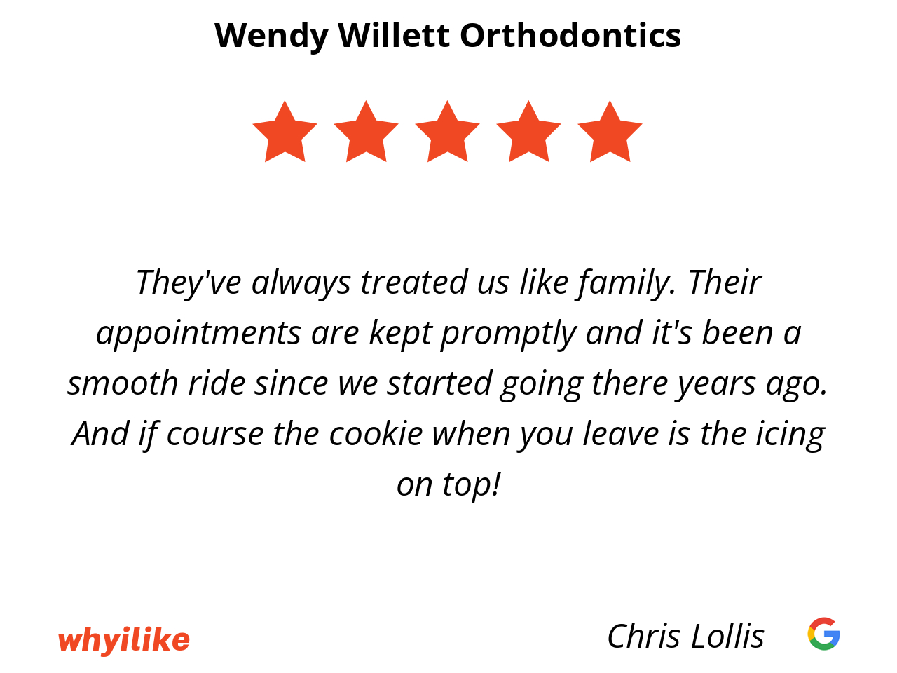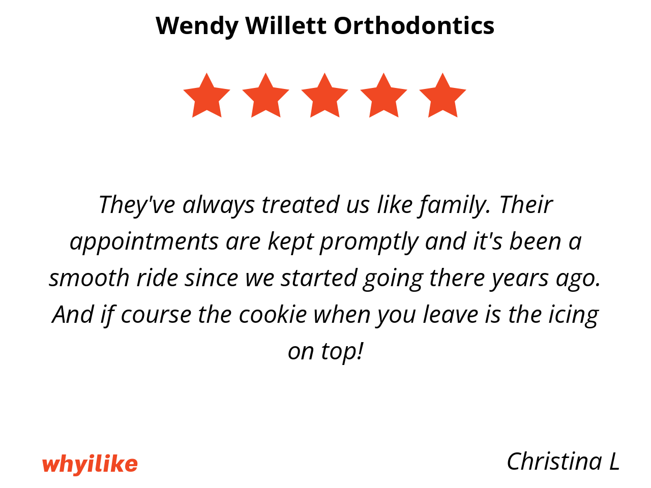 I recommend Wendy Willett to everyone who is looking for an orthodontist.