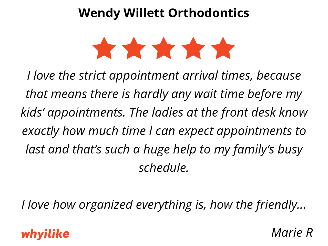 I recommend Wendy Willett to everyone who is looking for an orthodontist.