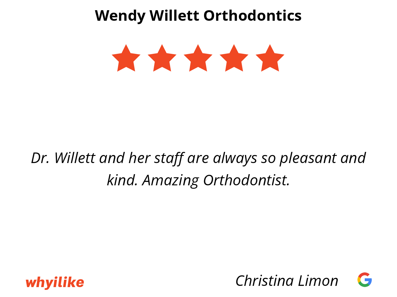 Dr. Willett and her staff are always so pleasant and kind. Amazing Orthodontist.