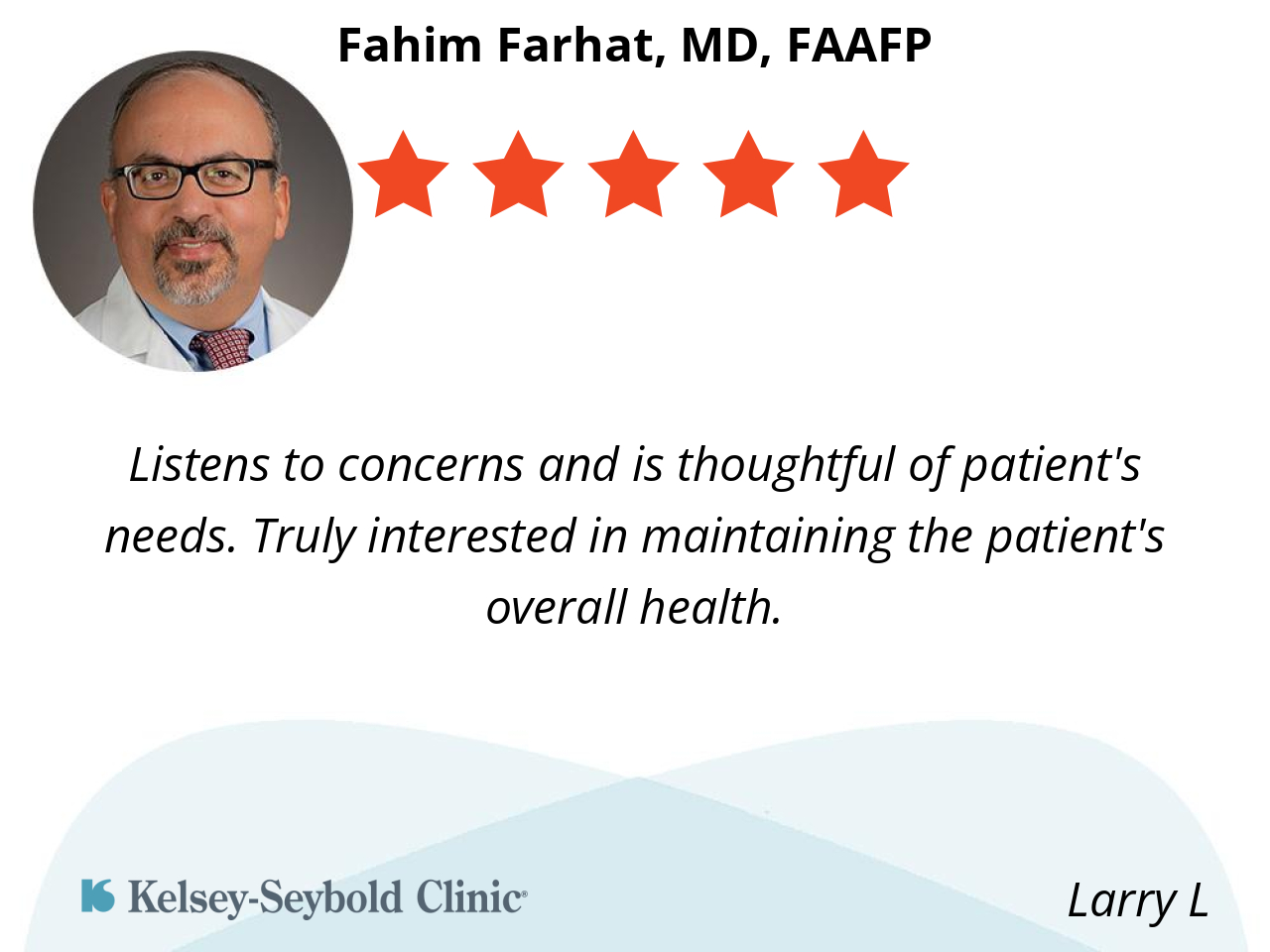Because he have been our family for over 20+ years! He have blessed us by treating us with whatever sickness we go to him! Hr is a good doctor and trust his opinion! Because he explain to you what he want you to do to help heal your issue may be! Thank you Dr FARHAT 🙏🏼❤️