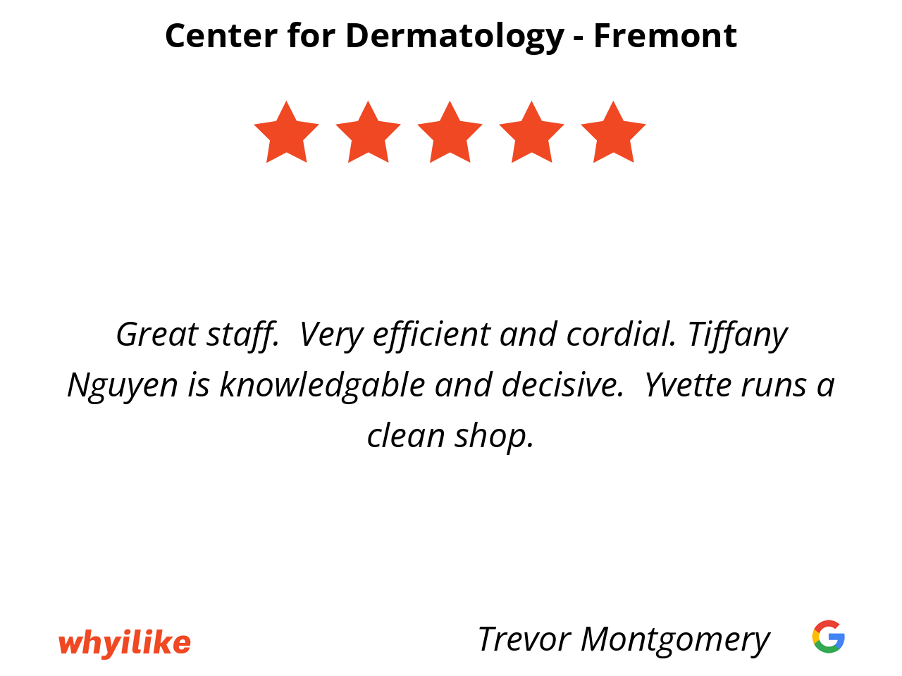 I have now had multiple procedures at the Fremont facility. I had a fairly large melanoma removed this last week. Dr. Cabral and the rest of the staff are great.