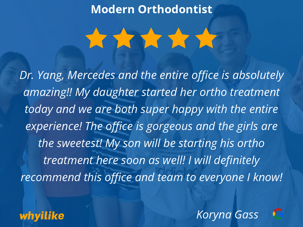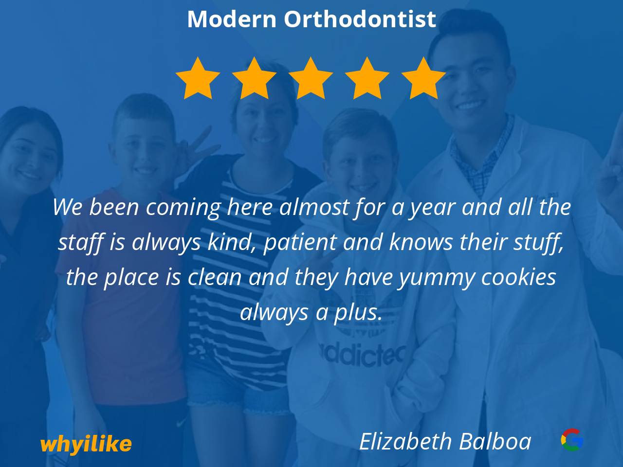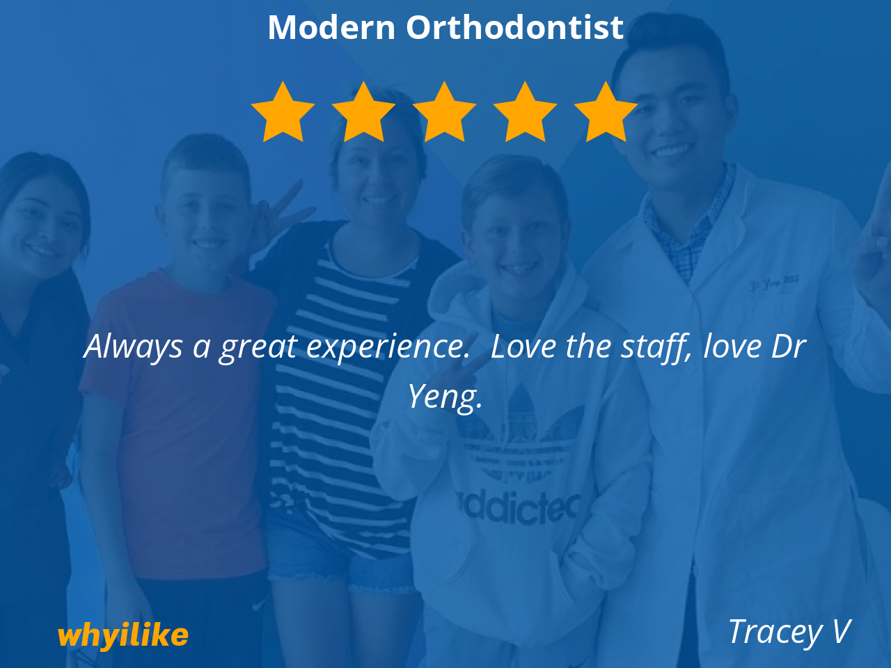 We were referred to Modern Orthodontist by our pediatric dentist. Dr. Yang and his staff are such a blessing. We are 6+ months into braces for both of my kids and we have absolutely zero complaints so far. My kids have no complaints. We look forward to our appointments. It’s easy to schedule. They communicate extremely well. We always know what’s happening and what the plan is which I appreciate very much. They always make sure there are no issues before we leave. We love everyone there. If you’re in need of an orthodontist, look no further.