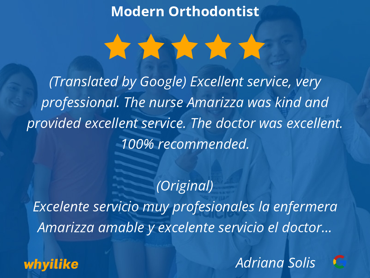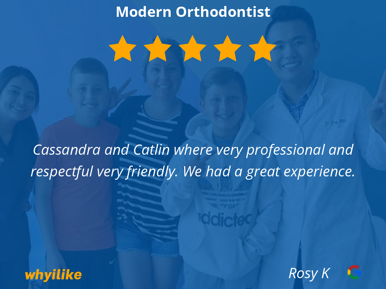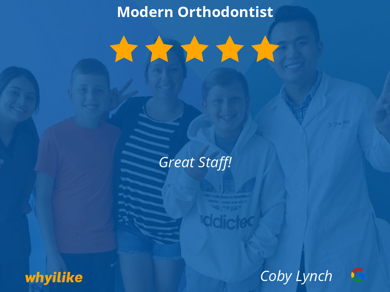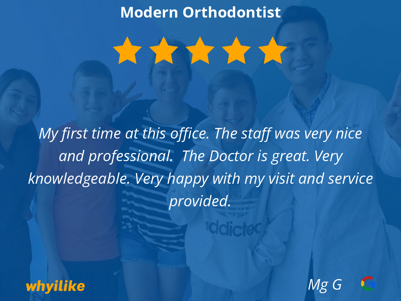 Our experience at Modern Orthodontist was excellent from start to finish! The front desk greeted us with genuine kindness and professionalism, making us feel welcomed right away. The staff was awesome — friendly, knowledgeable, and very informative throughout the entire visit. You can tell they truly care about their patients.