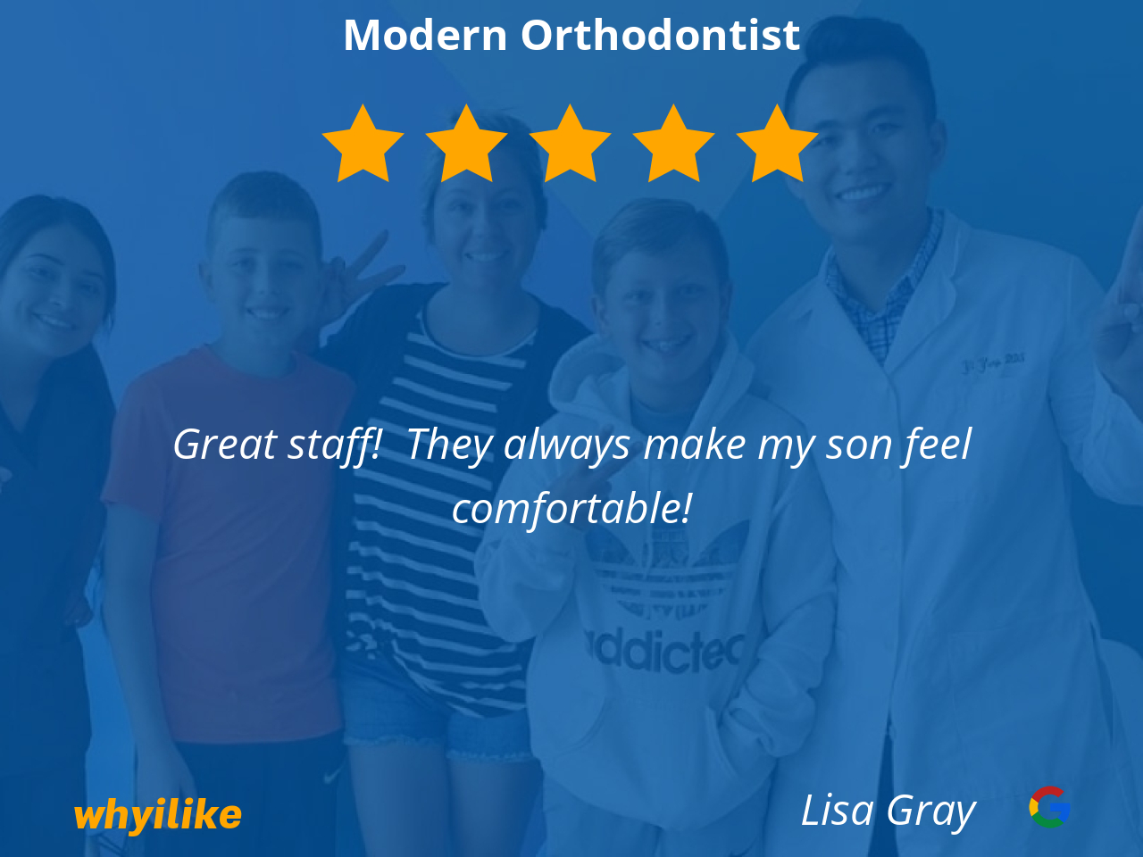 Modern Ortho is amazing! They are so patient with my nervous son and take the time to explain everything they are doing so he knows what is going on. I cannot recommend them enough!