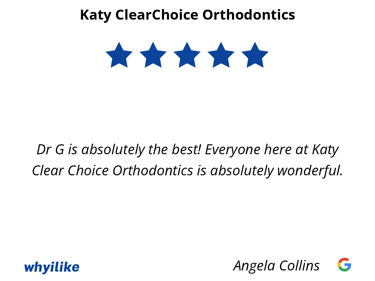 Dr G is absolutely the best! Everyone here at Katy Clear Choice Orthodontics is absolutely wonderful.