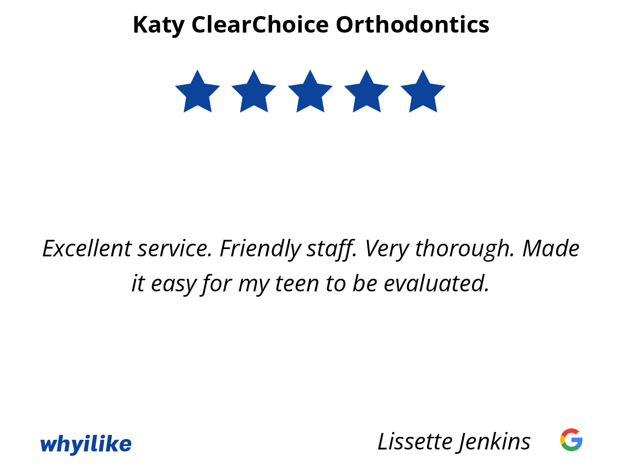 We love Katy Clear Choice! Dr. G and the entire staff have been amazing to work with as our daughter began Invisalign.