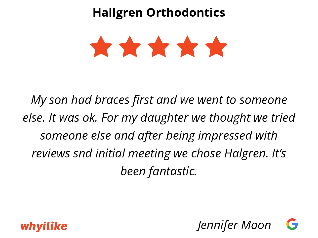 My son had braces first and we went to someone else. It was ok. For my daughter we thought we tried someone else and after being impressed with reviews snd initial meeting we chose Halgren. It’s been fantastic.