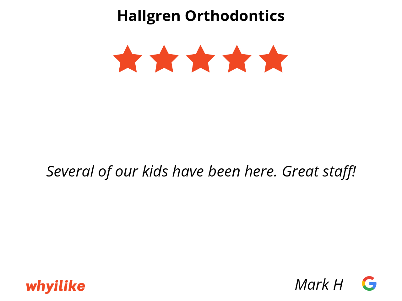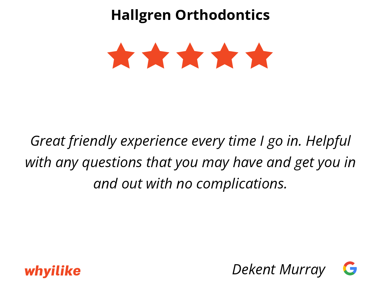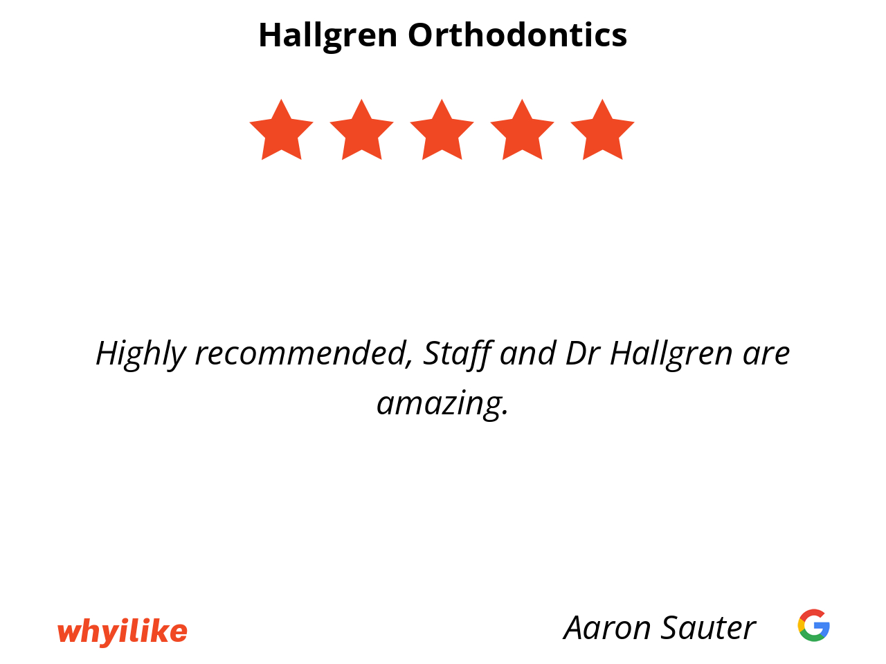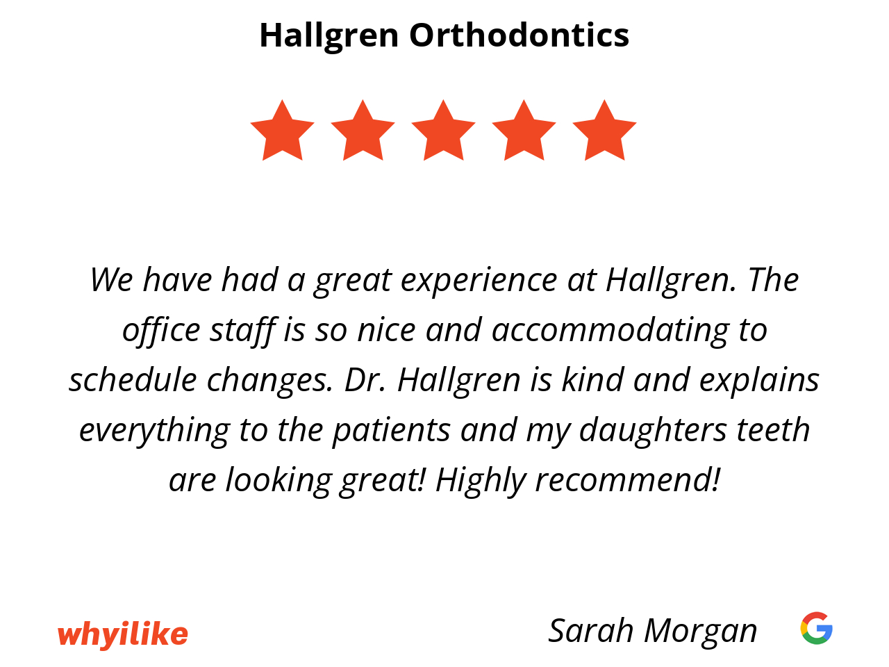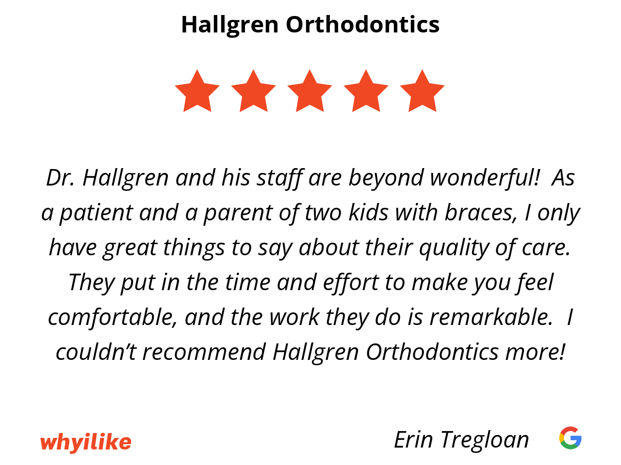 Dr. Hallgren and his staff are beyond wonderful! As a patient and a parent of two kids with braces, I only have great things to say about their quality of care. They put in the time and effort to make you feel comfortable, and the work they do is remarkable. I couldn’t recommend Hallgren Orthodontics more!