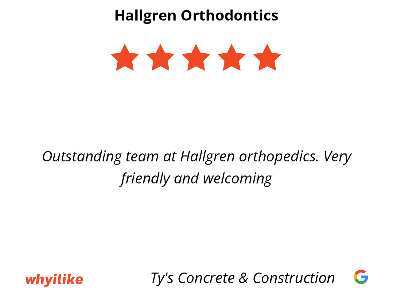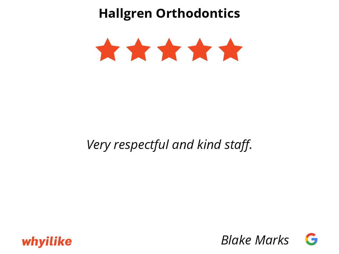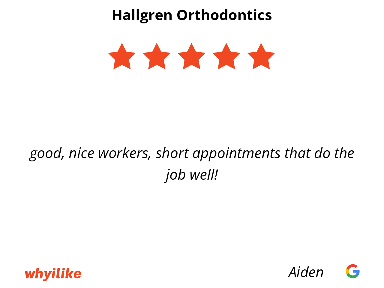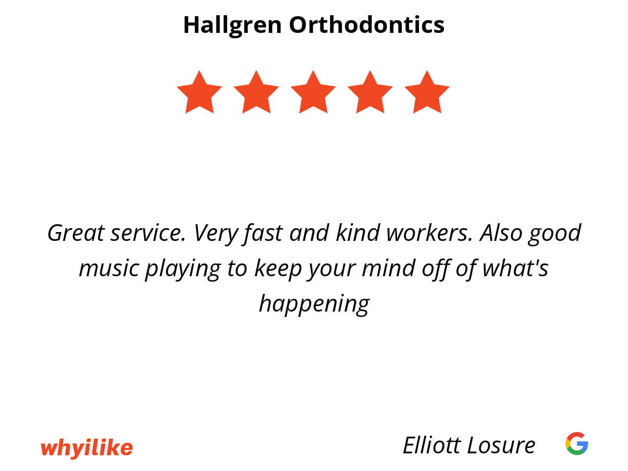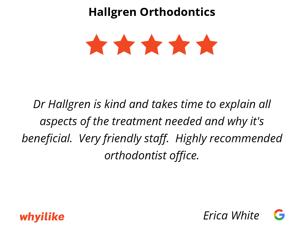 Dr Hallgren is kind and takes time to explain all aspects of the treatment needed and why it's beneficial. Very friendly staff. Highly recommended orthodontist office.
