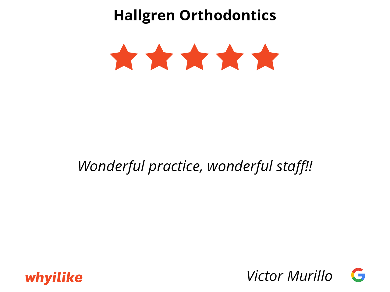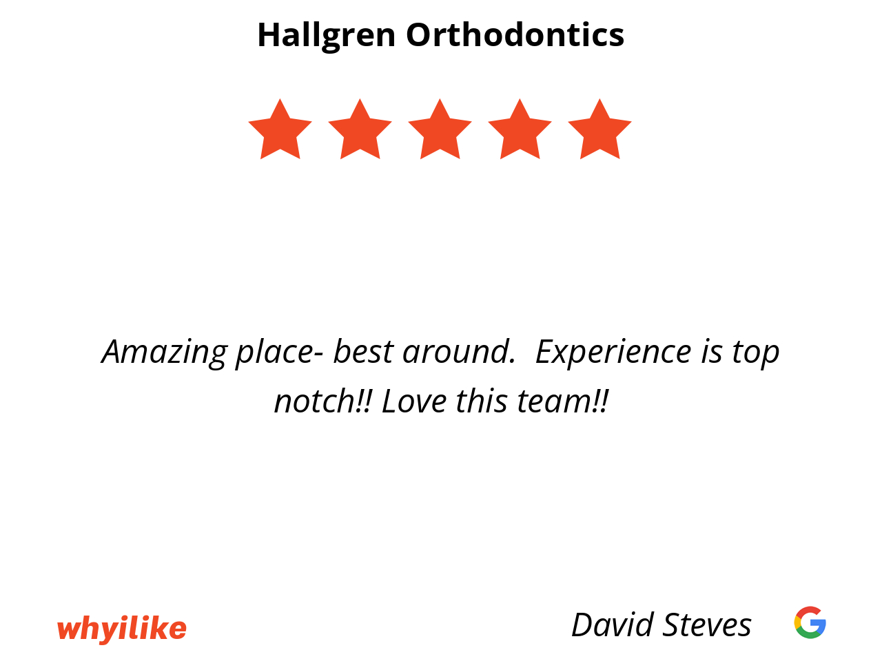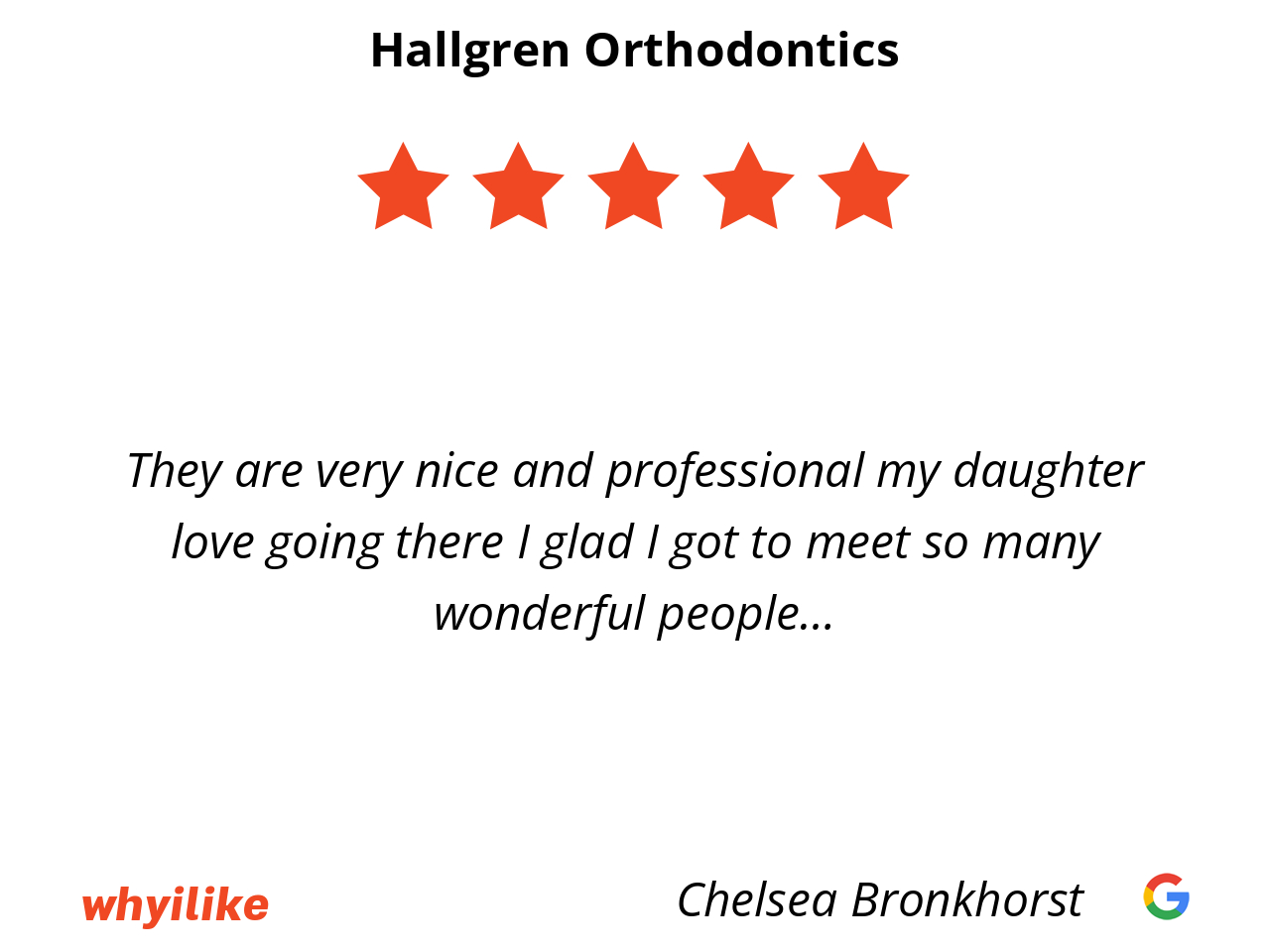 Hallgren Orthodontics is amazing! The team is always so informative and super nice. They make you feel comfortable and really take the time to explain everything. Highly recommend!