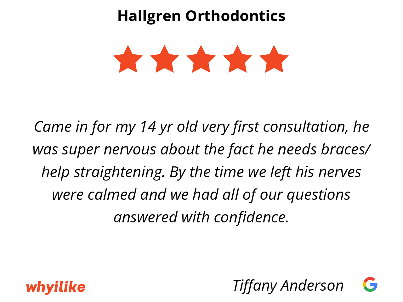 We’ve been patients at Hallgren for a couple of years in preparation for braces, and today my son officially got them on. He was understandably a little nervous, but the entire team was incredibly kind, patient, and reassuring throughout the process. We have consistently had a wonderful experience with all of the staff. Our concerns are always taken seriously, and we leave each appointment feeling informed and confident about the next steps. We truly appreciate the care and professionalism they provide and are so glad we chose Hallgren for his orthodontic journey.
