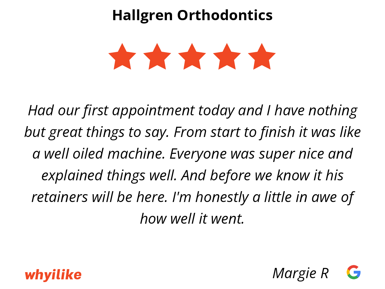Couldn’t be happier with our decision to work with Hallgren Orthodontics for our girls’ treatment. They have been honest, helpful, and overwhelmingly welcoming. We can’t wait to see the results!