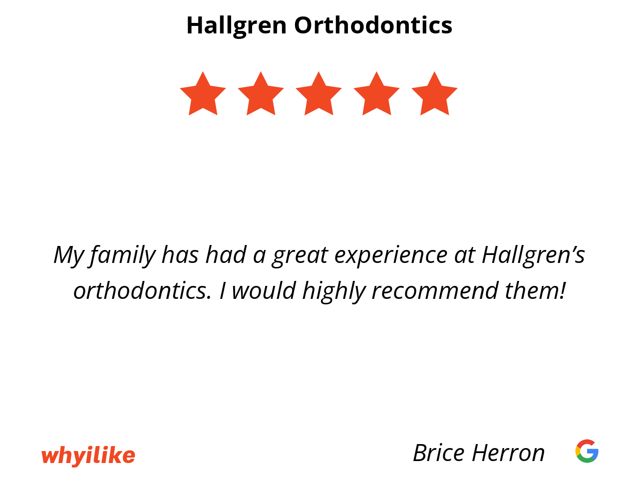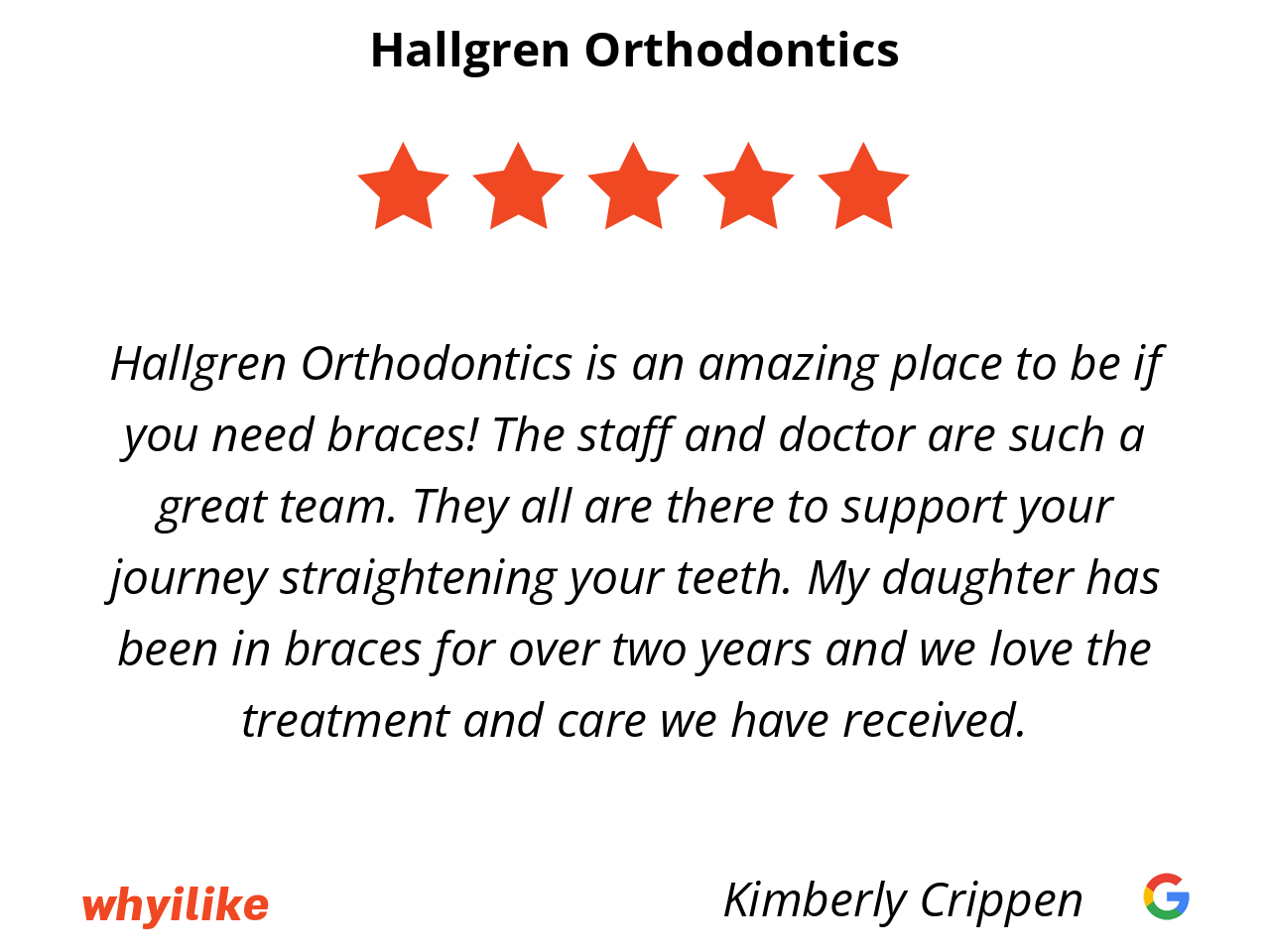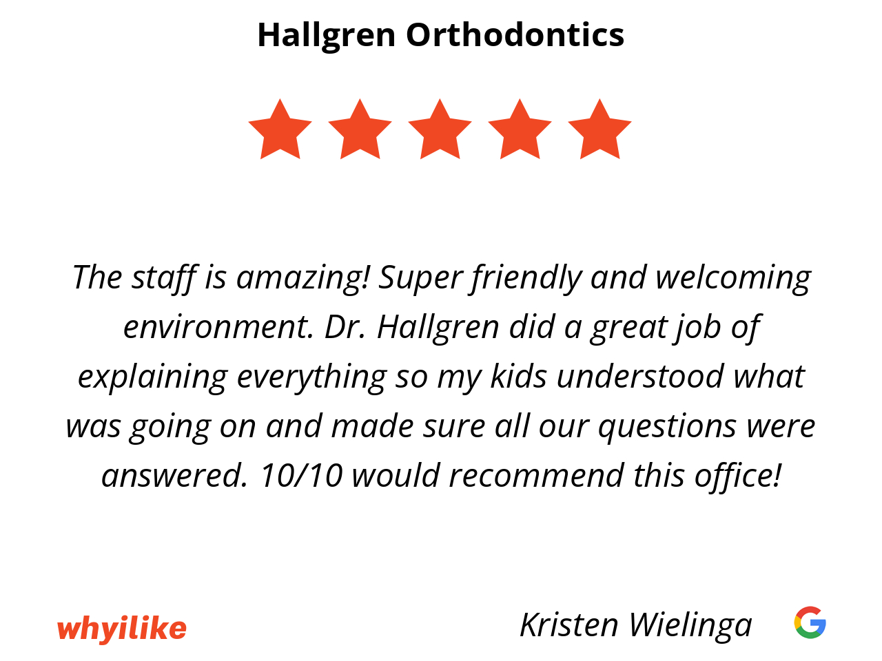 My family has had a great experience at Hallgren’s orthodontics. I would highly recommend them!