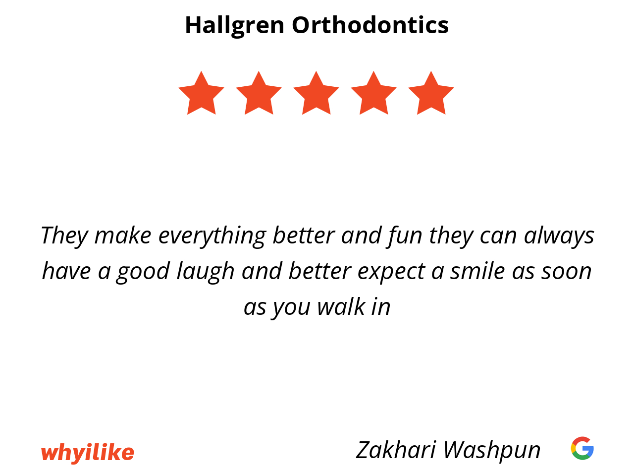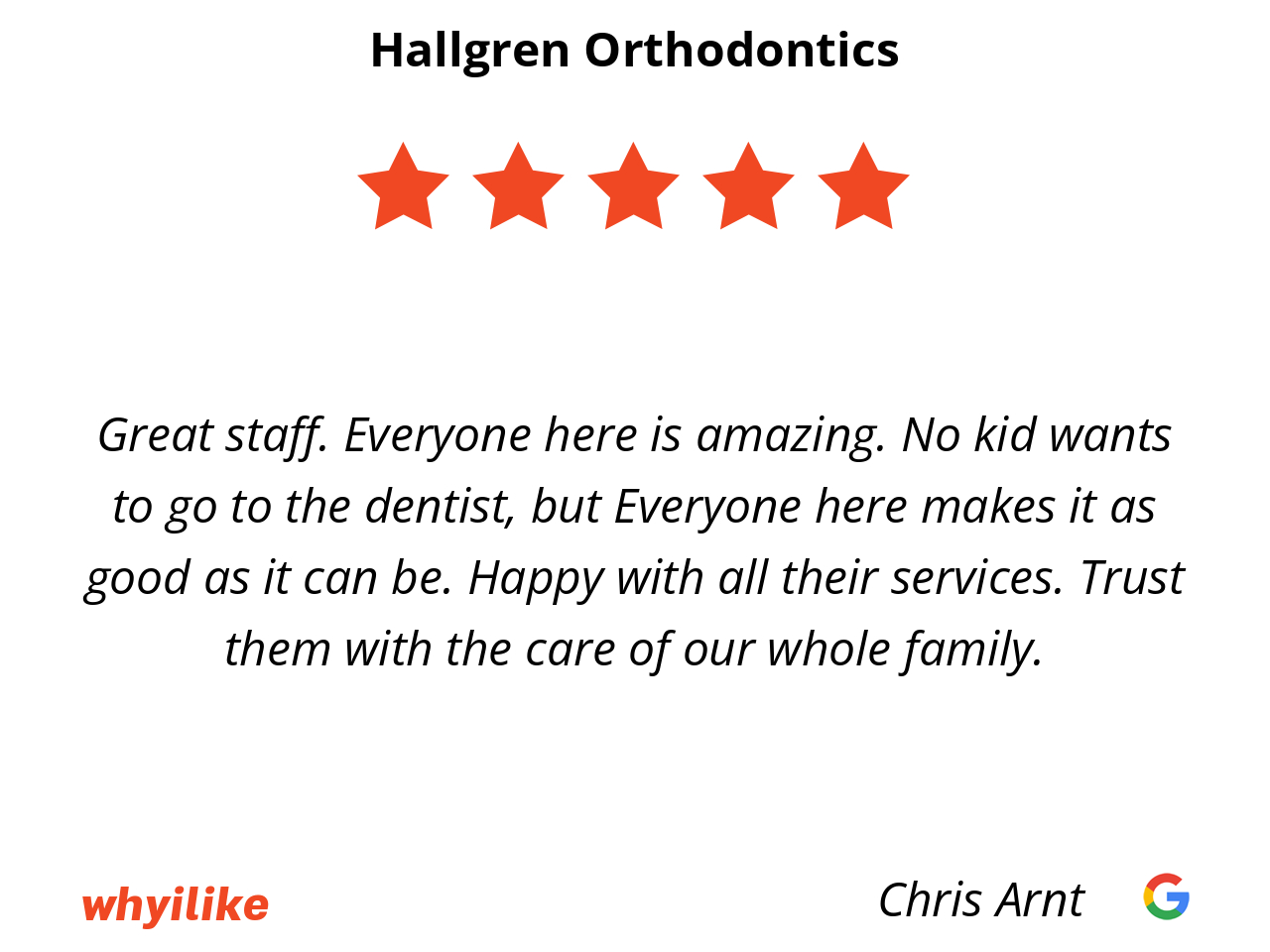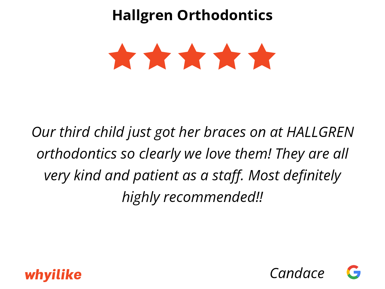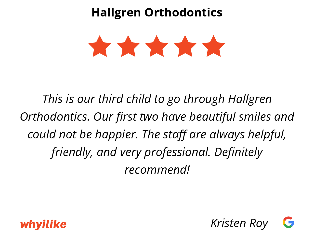 My family has had a great experience at Hallgren’s orthodontics. I would highly recommend them!