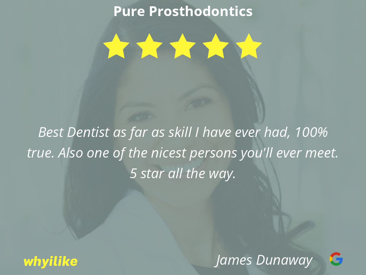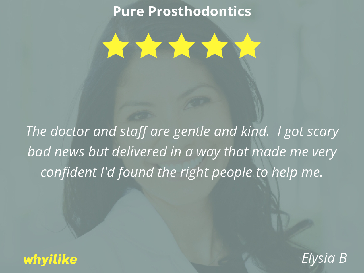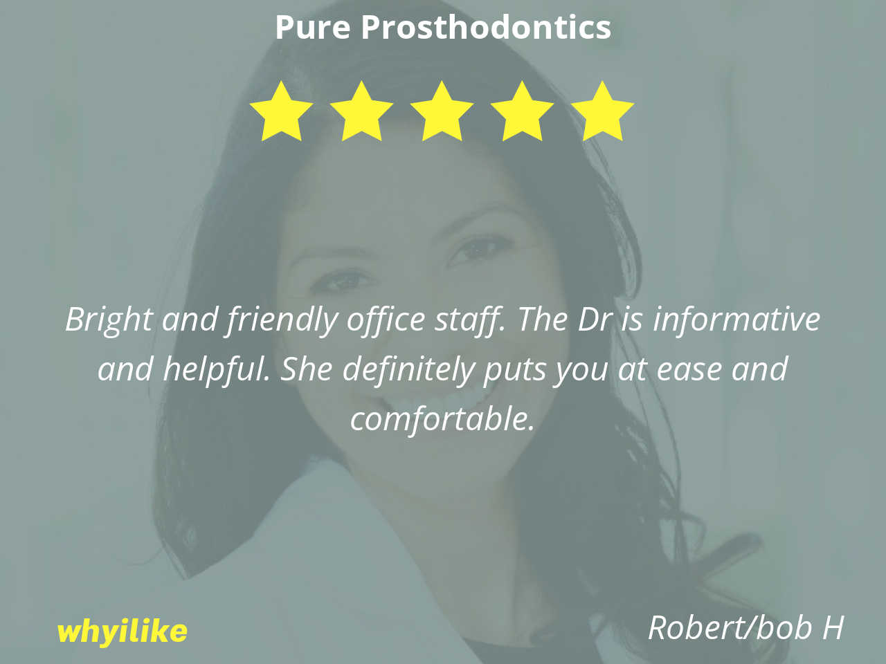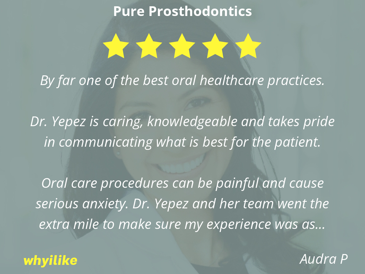 If you’re seeking prosthodontic or cosmetic dentistry and want a clinician who combines expert skill with genuine, patient-centered care, I highly recommend Pure Prosthodontics and Dr. Yepez. They’ve helped me not only restore my smile but reclaim my confidence and sense of self.
